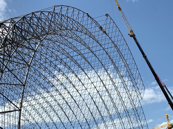 (2)网架加工前应对现场尺寸进行复测,确认无误后方可进行加工、安装;网架制作、运输、安装应遵守《空间网格结构技术规程》JGJ7-2010、《钢网架肇庆螺栓球节点》JG/T 10-2009、《钢网架肇庆螺栓球节点用高强度螺栓》 GB/T 16939-2016、《肇庆钢结构肇庆工程肇庆施工规范》 GB50755-2012、《肇庆钢结构肇庆工程肇庆施工质量验收标准》 GB50205-2020。